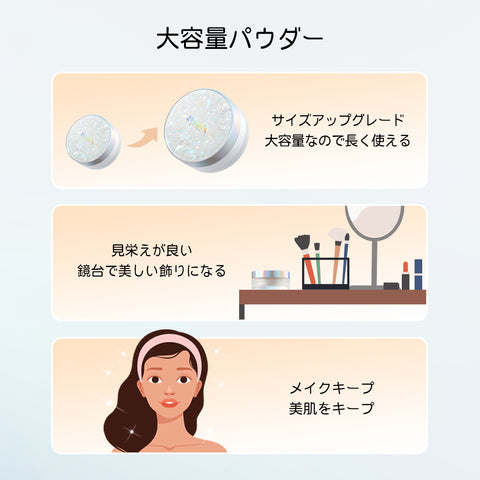 ✨ 軽やかでシルキーな質感 - 超微細なパウダーがなめらかに広がり、肌に均一になじむことで、まるで素肌のような軽やかな仕上がりを実現。